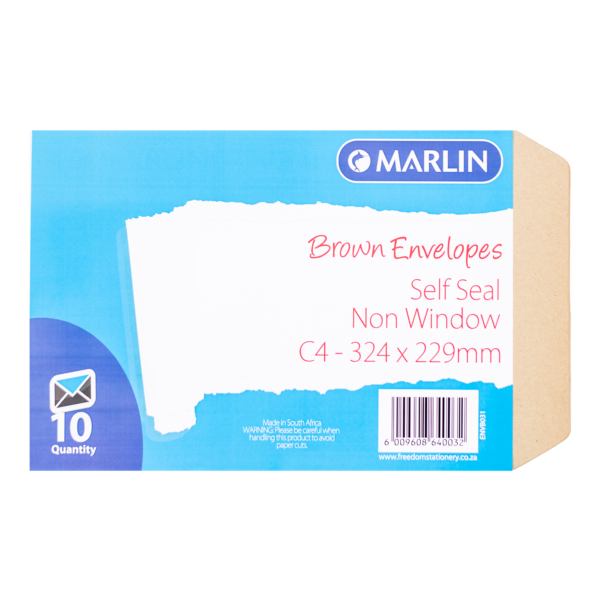 Marlin Envelopes C4 Pocket Brown Self Seal 10’s