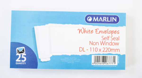 Marlin Envelopes DL White with Window Self Seal 500’s