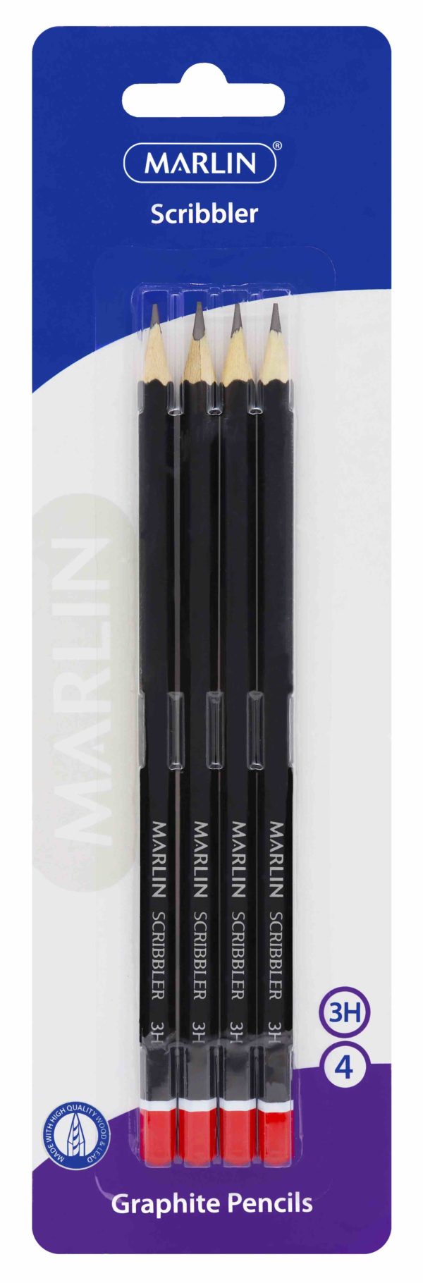Marlin Graphite Pencils 3H end dipped pencil Black barrel 4’s