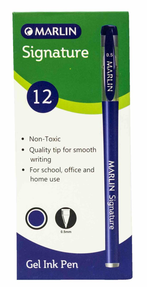 Marlin Signature gel ink pens box of 12’s Blue 0.5mm