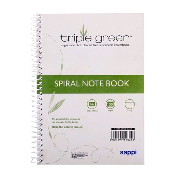 Triple Green side spiral note book A6 100 page