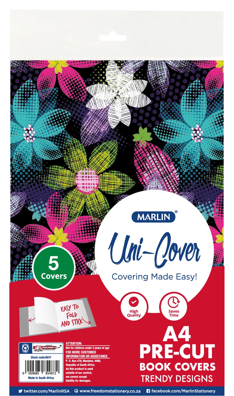 Marlin Kids Precut book covers A4 Fancy Designs 5’s – 1 design per pack – various designs with die-cut