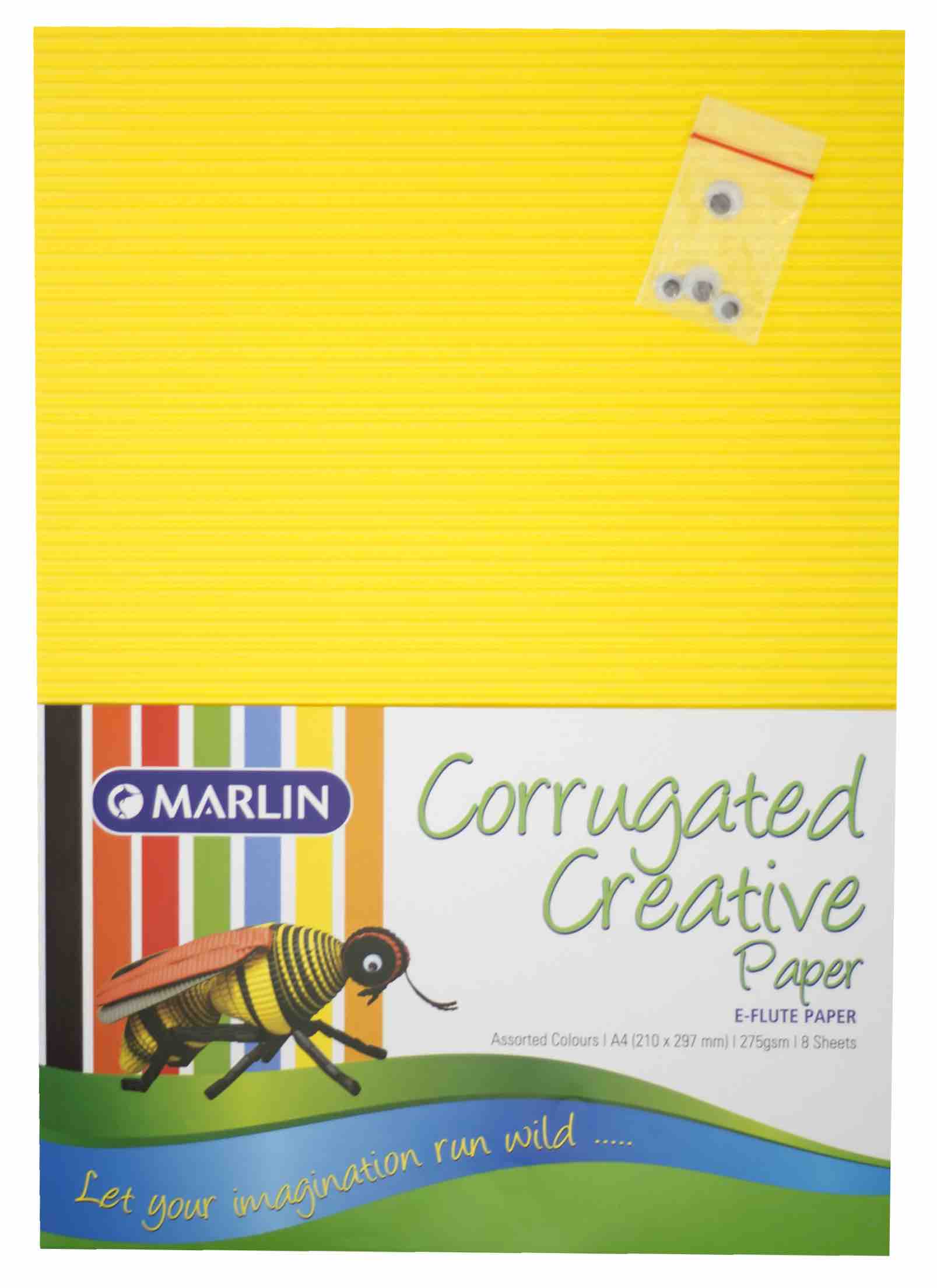 Marlin E-Flute Corrugated Paper 275g 8 assorted BRIGHT colour sheets