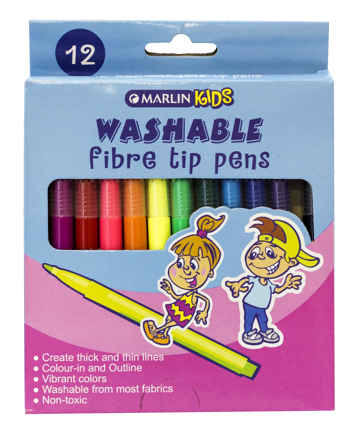 Marlin Kids washable fibre tip pens 12’s