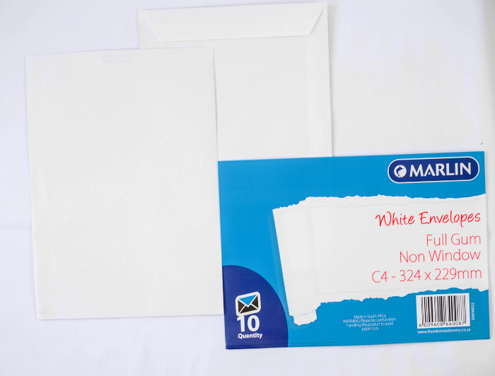 Marlin Envelopes C4 Pocket White Gum 10’s