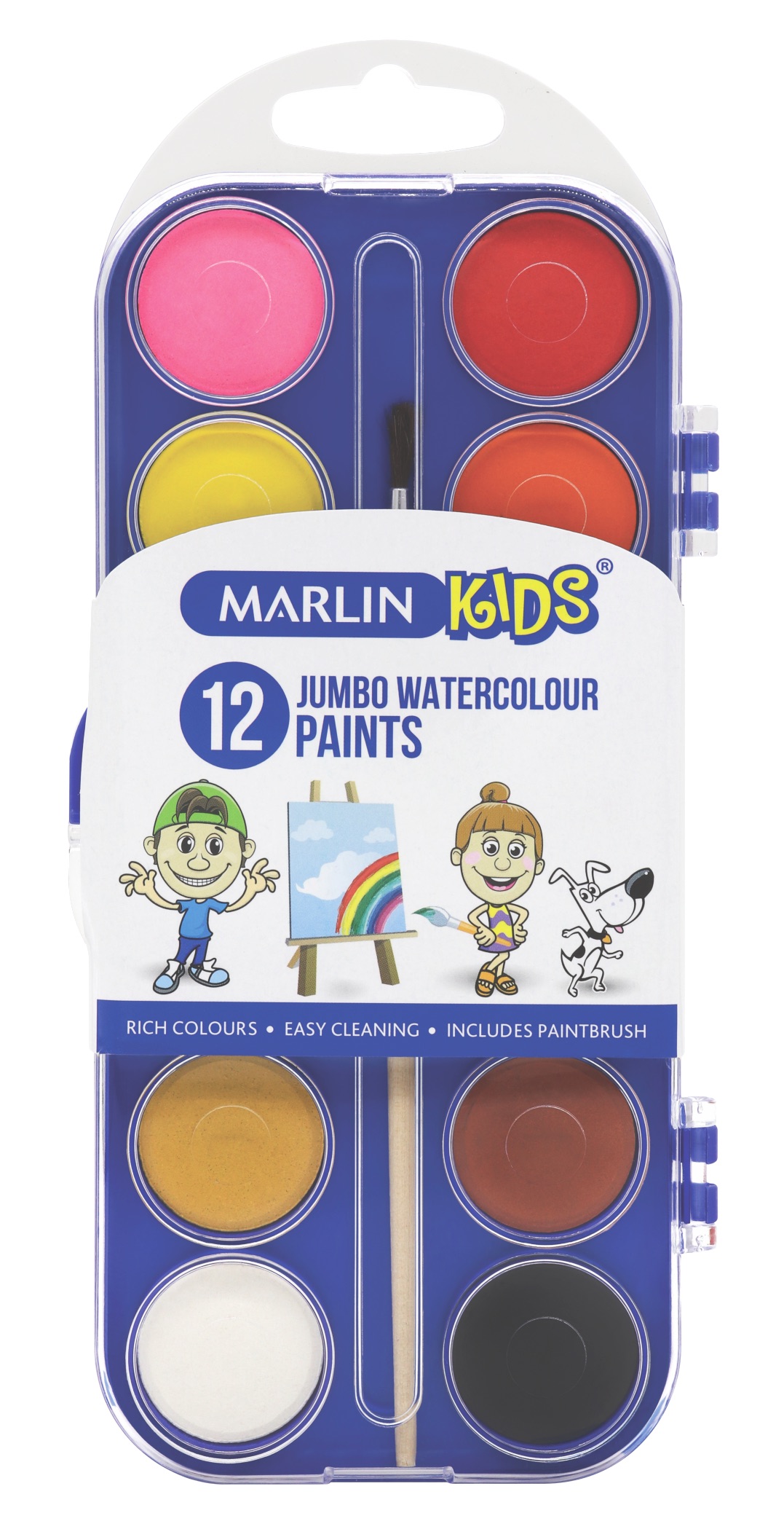 Marlin Kids 12 Jumbo Watercolours & Brush