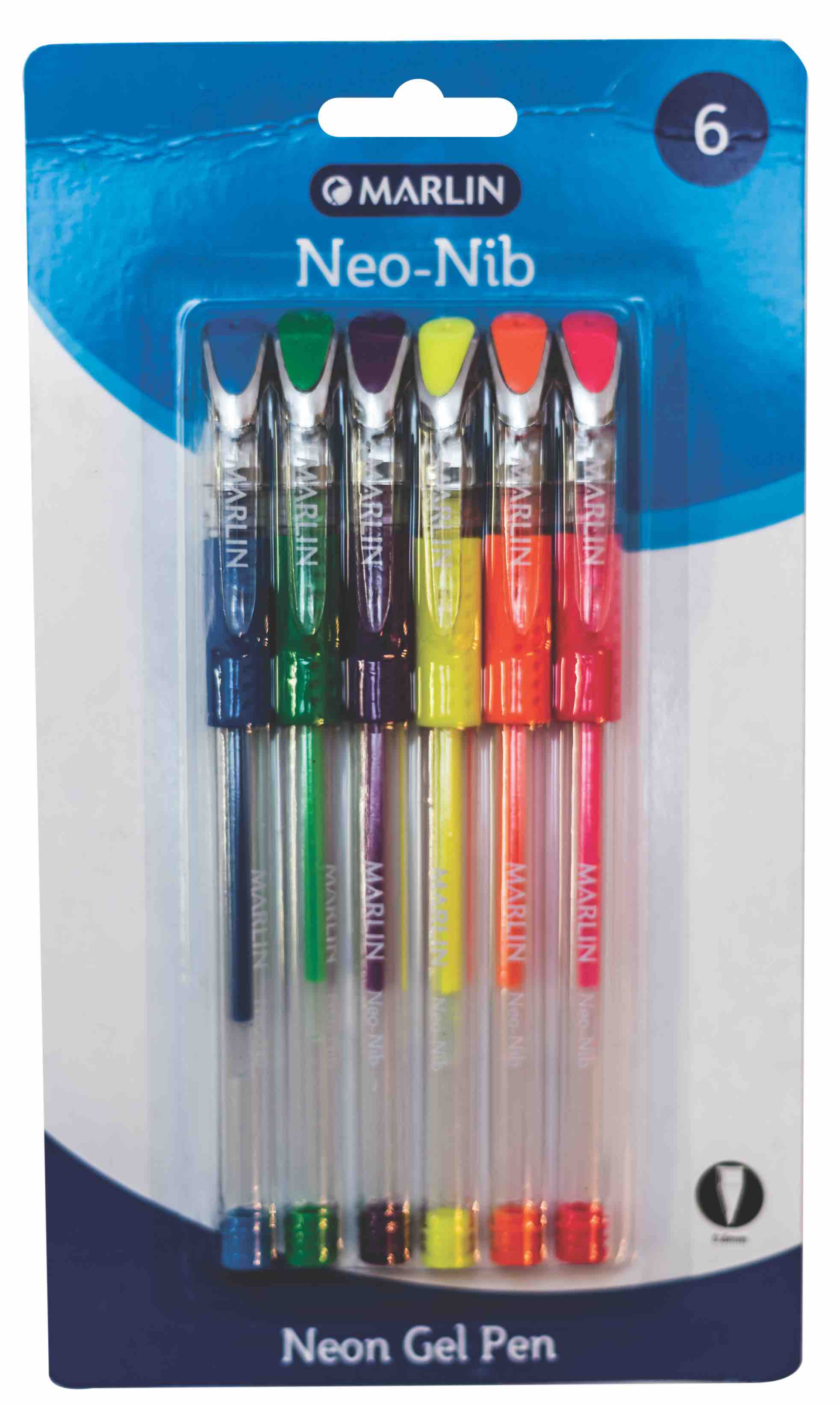 Marlin Neo-Nib Neon gel ink pens 6’s assorted 0.8mm tip